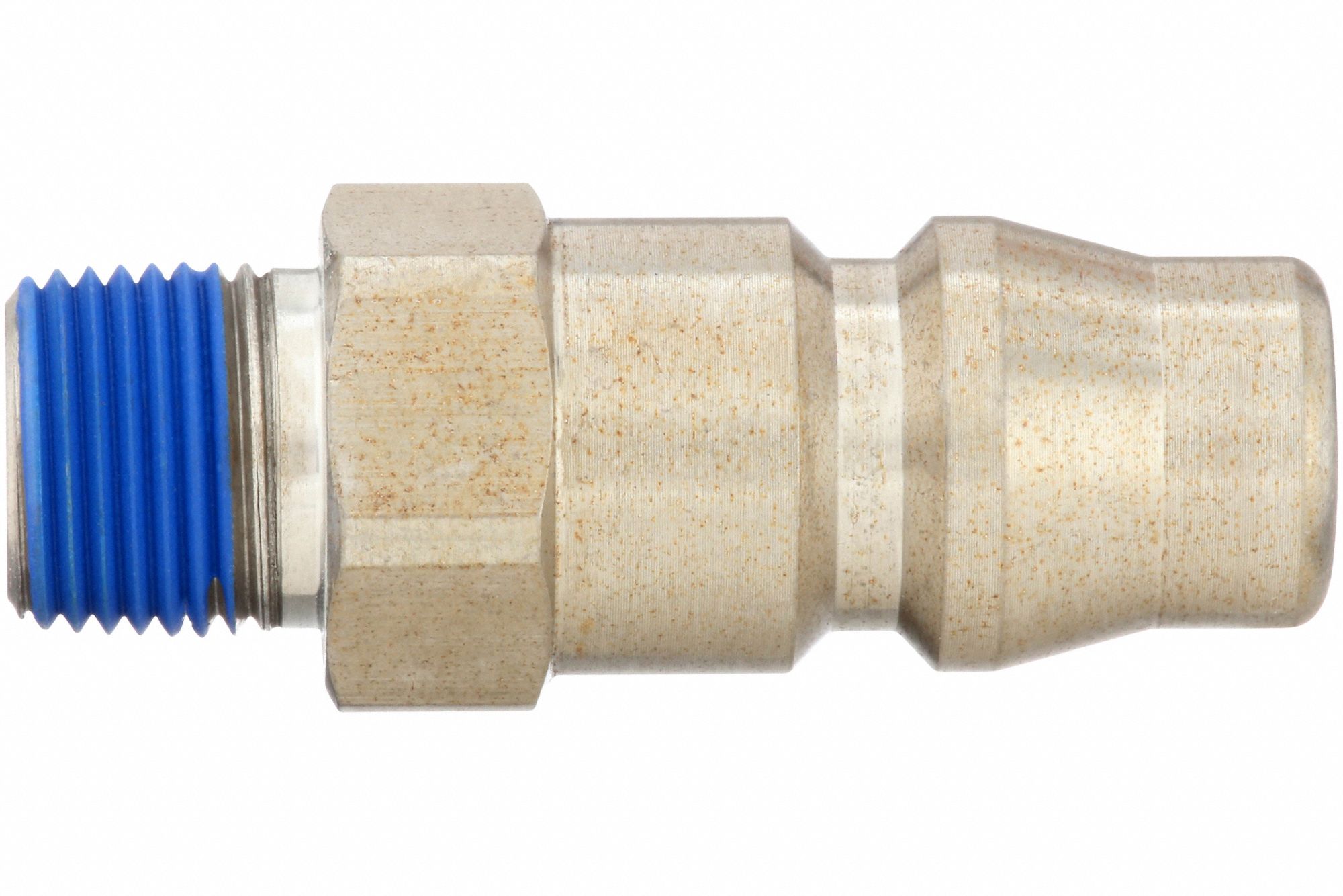 • Coupler Plug,Hi Flow Interchange,304 SS,(M)NPT Hose Connection,Connection Size NPT (In.) 3/8,Body Size (In.) 1/2,Max. Pressure (PSI) 400,Temp. Range 0 to 170 F,HNBR Seals,For Use With Hi Flow Coupler,Weight Each (Oz.) 1.9,Used on End of Hose or Tool Inlet for Connection to Quick Coupler