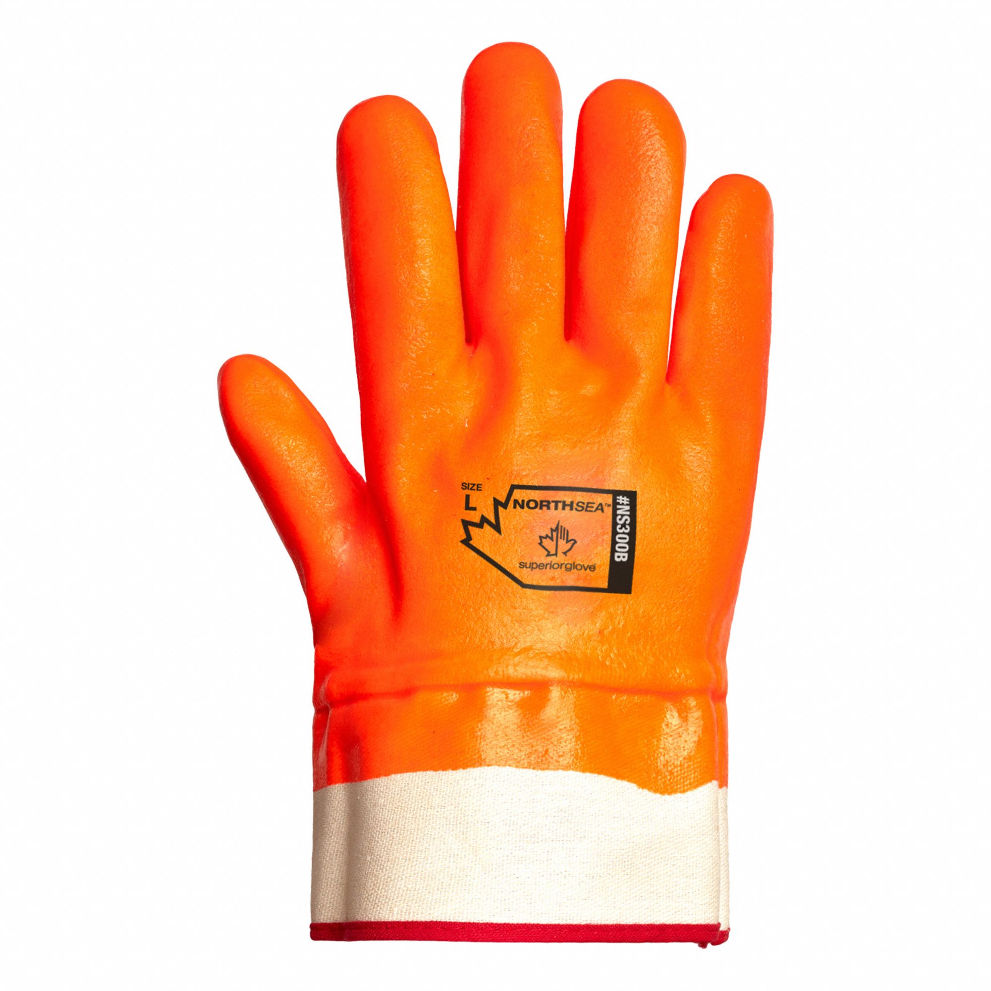 These North Sea N230FLK fleece-lined fishing gloves are size X-large 10 and are made of cotton and nitrile. They feature oil- and water-repellant treatment and are waterproof. Chemical-resistant gloves are made of rubber polymers that withstand exposure to liquid chemicals like acids, oils, and solvents.