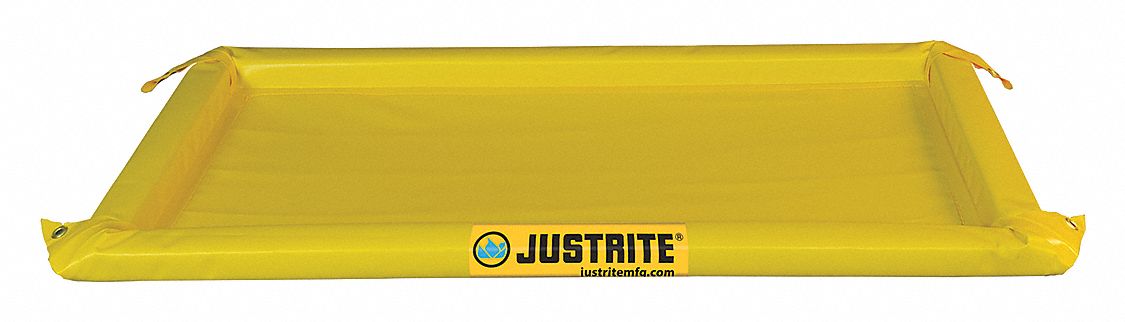 • This spill berm is made of light PVC-coated fabric and is yellow. It has a 220-gallon spill capacity. It measures 222 inch length x 126 inch width x 2 inch height.