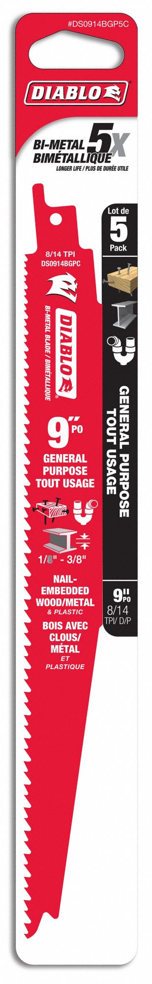 Fast cut your materials with this Super SAWZALL reciprocating saw blade that is great for metal and wood. Each blade measures nine inches long with 14 teeth per inch.