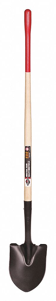 • This round point long-handled shovel has an 8-1/2 x 11-3/8-inch tempered steel blade and a 46-1/2-inch hardwood handle. It has an overall length of 55 inches.