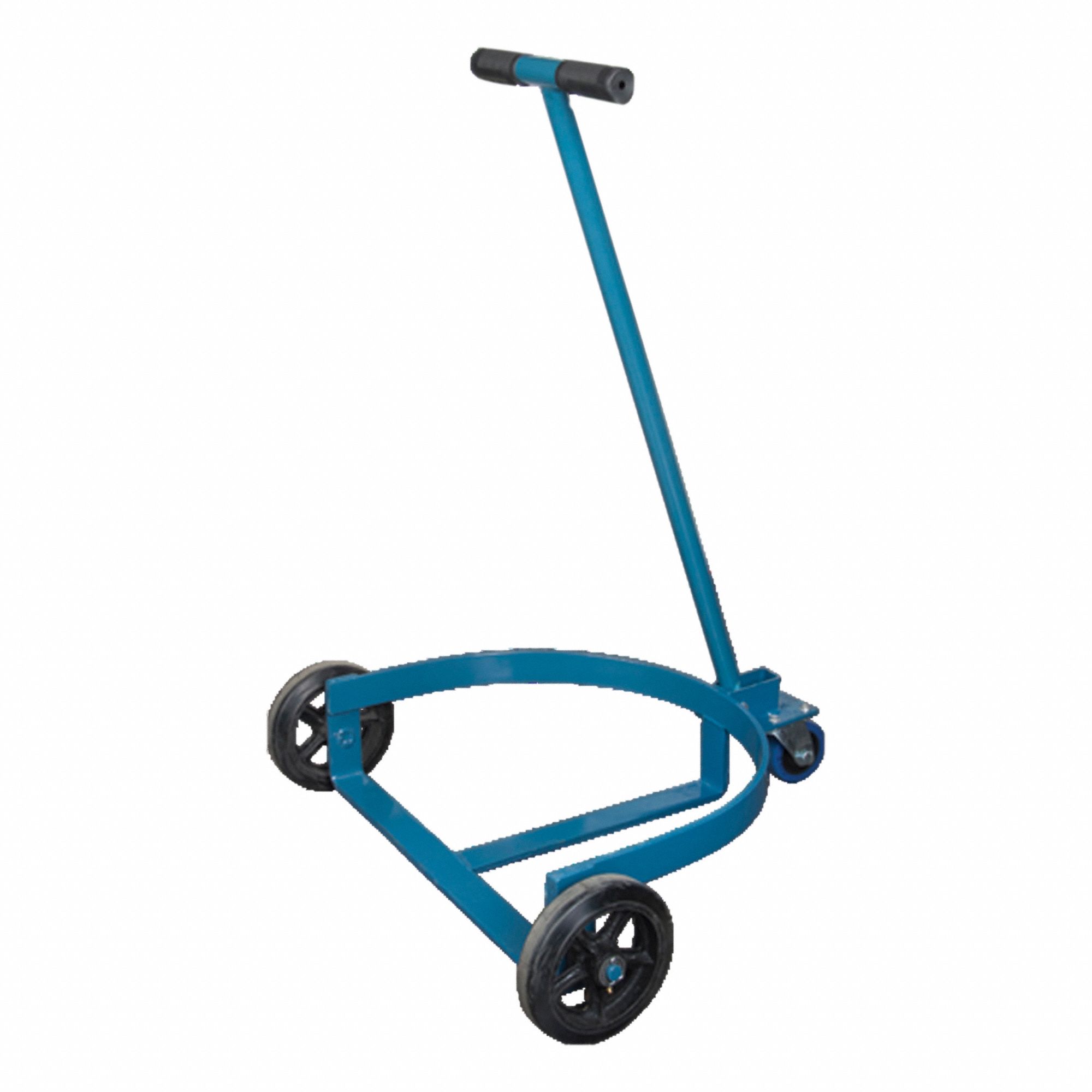 This draining drum truck measures 24 inch width x 58 inch height x 22 inch depth and is blue with an enamel finish/coating. Plus, it is made out of steel. In addition, it has a 1,000-pound load capacity.