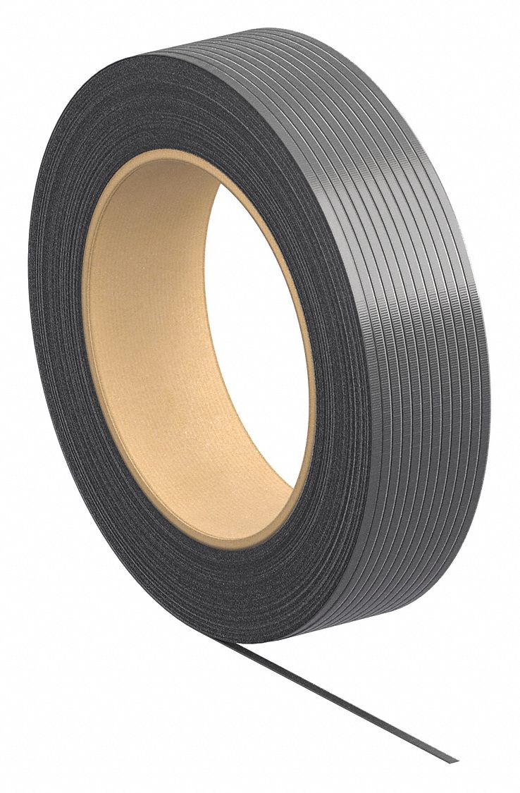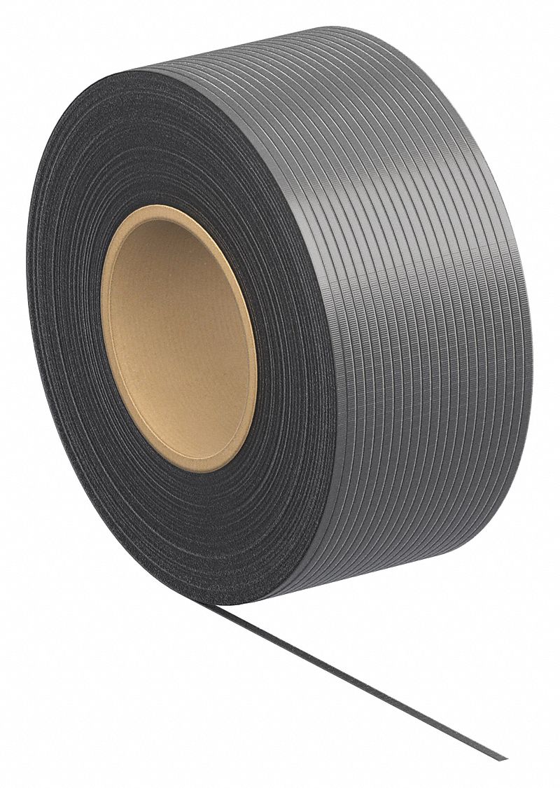 This plastic strapping is black and is made of polypropylene. It is 0.026 inch thick and measures 1/2 inch width x 3,600 feet length. In addition, it meets the standards for: D3950-12A. It is also designed for standard duty applications.