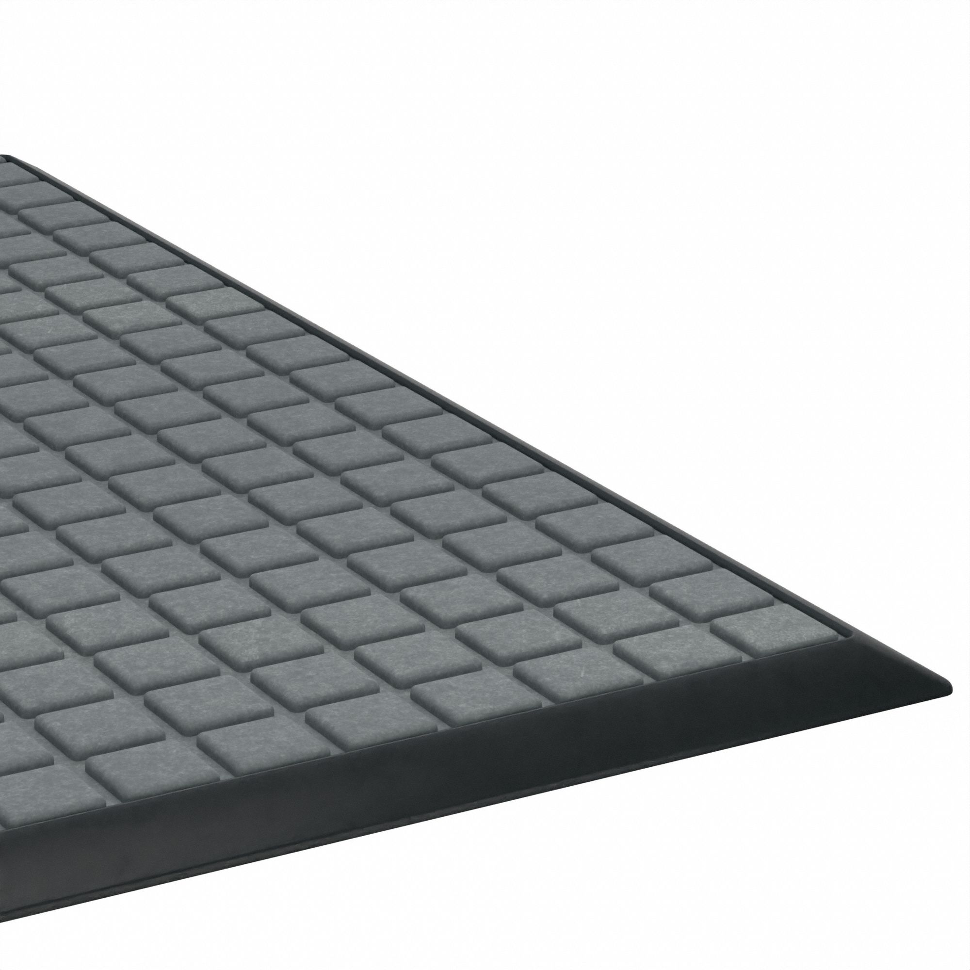 This grey 152 Waffle CTE entrance mat is made of polypropylene with a rubber backing. It measures 2 feet x 3 feet and is 3/8 inch thick. It also features a carpeted beveled edge and a waffle surface. In addition, it is for use in entranceways, lobbies, and more.