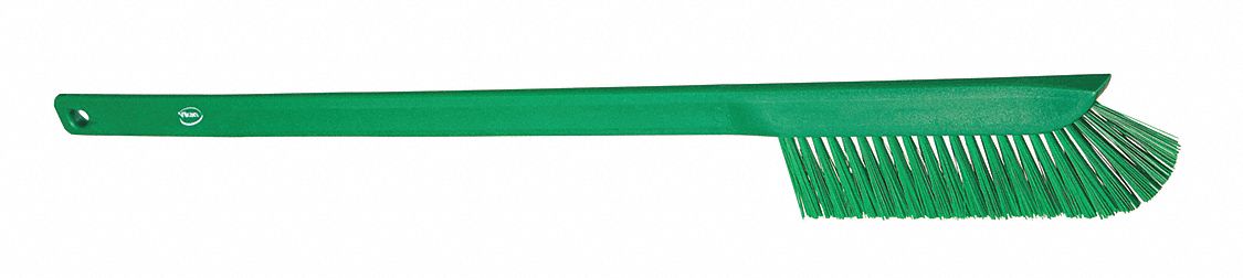 This cleaning brush is made of plastic, is colour coded, along with polyester bristles, and is resistant to acid, chemicals, and temperatures. It also features hanging hole. This cleaning brush has stiff bristles, plus it has a 4 1/2-inch brush length.