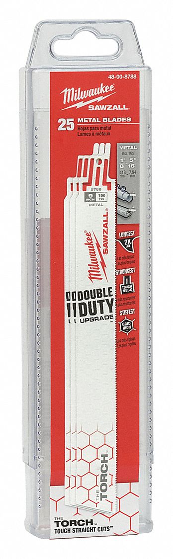 Heavy-duty high performance saw blade, 1/2 inch universal blade tang fits all Sawzalls(TM). Bi-metal construction increases blade life. Five blades per package.