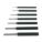 7 piece super duty drive pin punch set. Made from tool steel and specially treated for greater strength and ductility. Modified parabolic striking end for greater resistance to mushrooming and chipping. 1/10 to 1/4 inches.