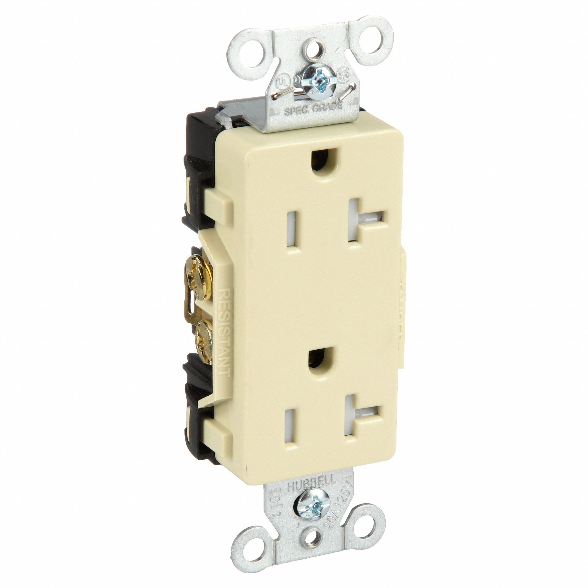 RECEPTACLE, DECORATOR DUPLEX, IVORY, 5-20R, 20 A, 125V AC, 2 POLE/3 WIRE, SCREW TERMINALS
